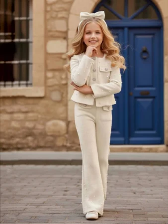 Beli biserni svečani komplet za devojčice
