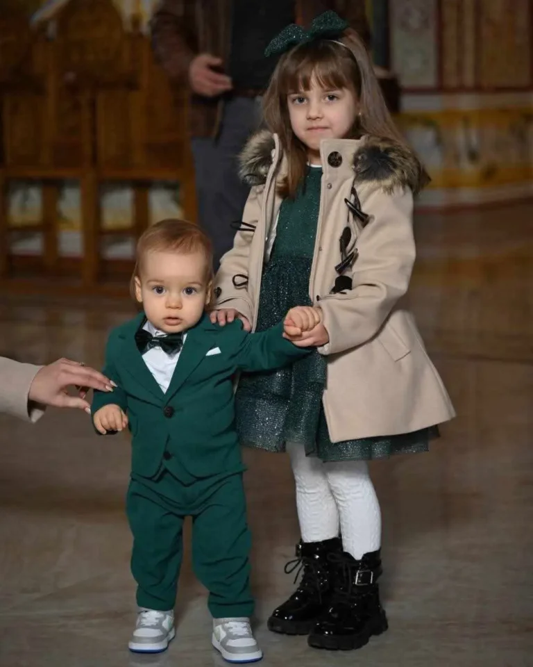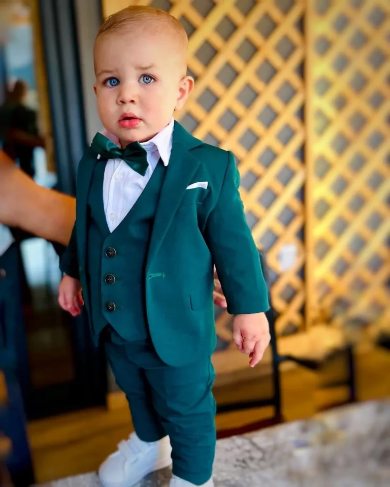 Zeleni svečani komplet sa prslukom za bebe i dečake