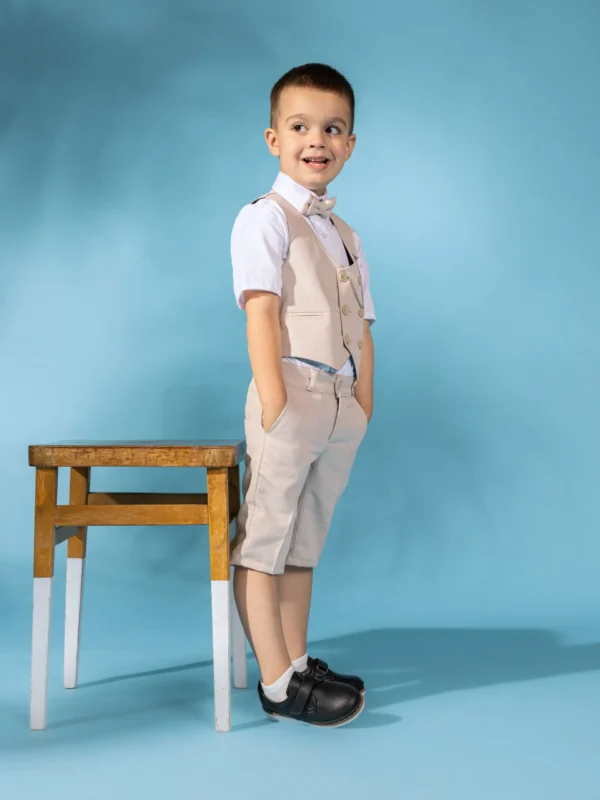 Svetlo bež komplet sa prslukom za bebe i dečake