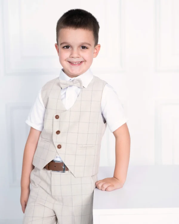 Bež karirani komplet sa prslukom za bebe i dečake
