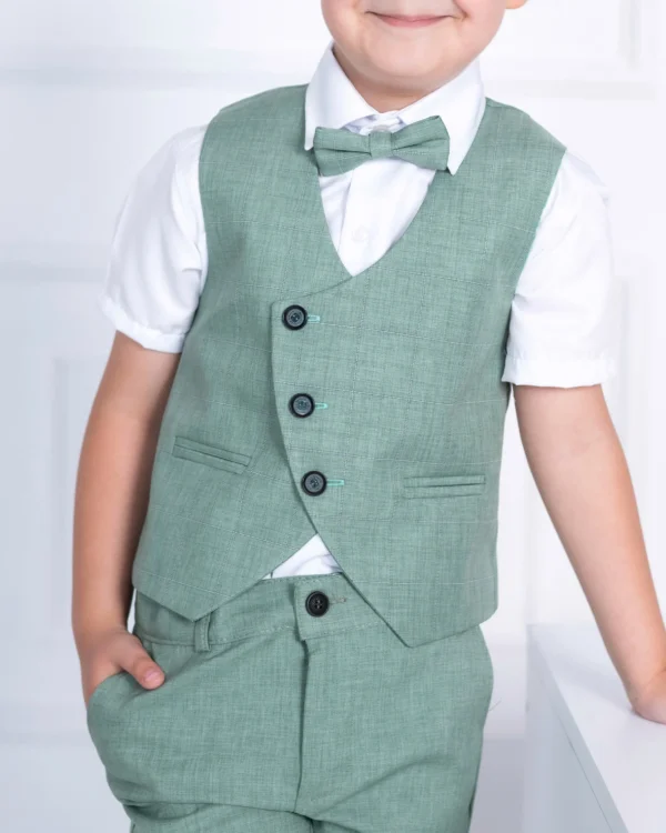 Zeleni svečani komplet sa prslukom za bebe i dečake