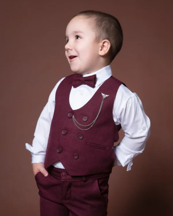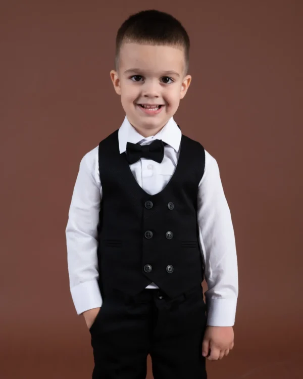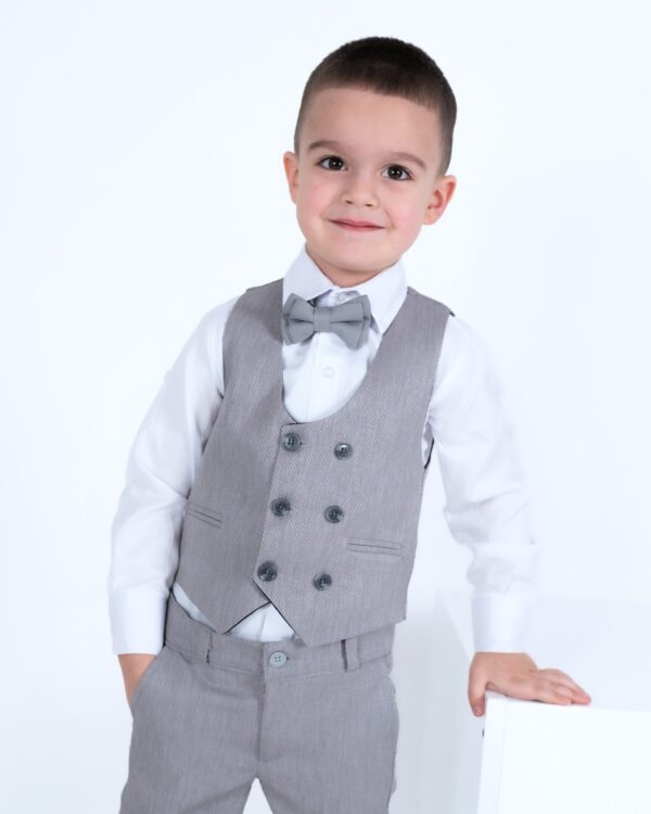 Sivi svečani komplet sa prslukom za bebe i dečake