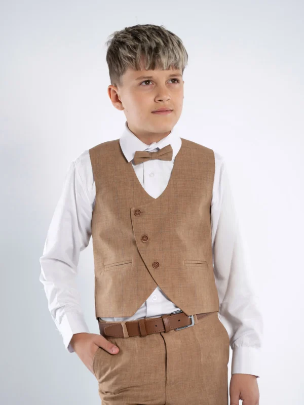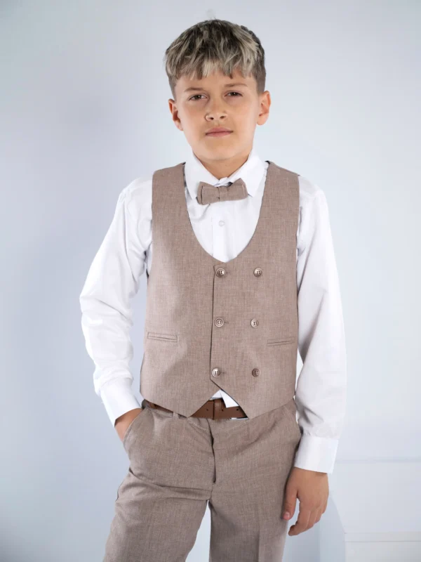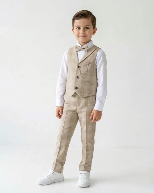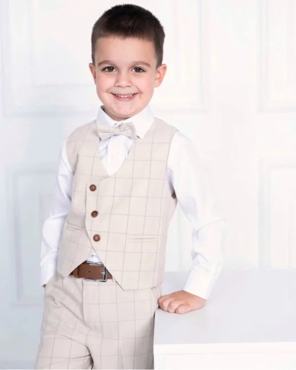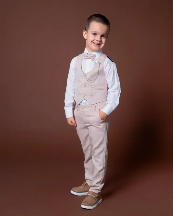 Svetlo bež komplet sa prslukom za bebe i dečake