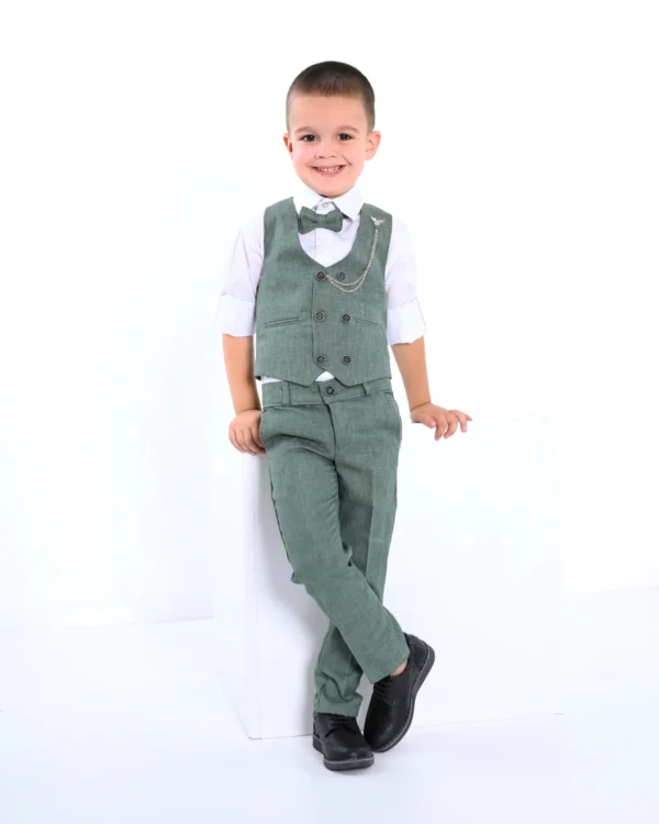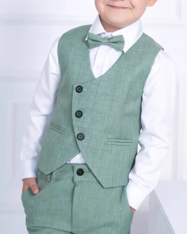 Zeleni svečani komplet sa prslukom za bebe i dečake