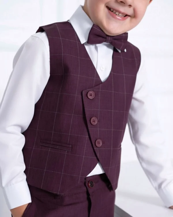 Sivi karirani komplet sa prslukom za bebe i dečake