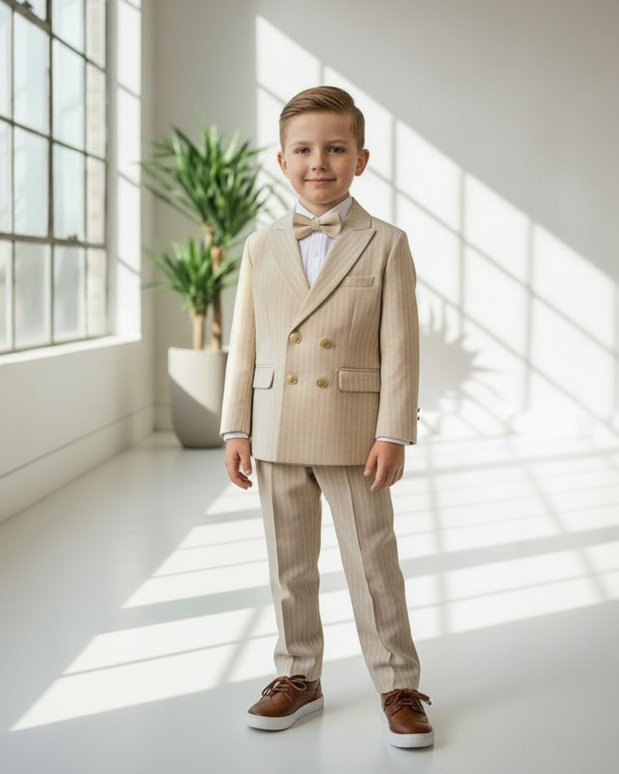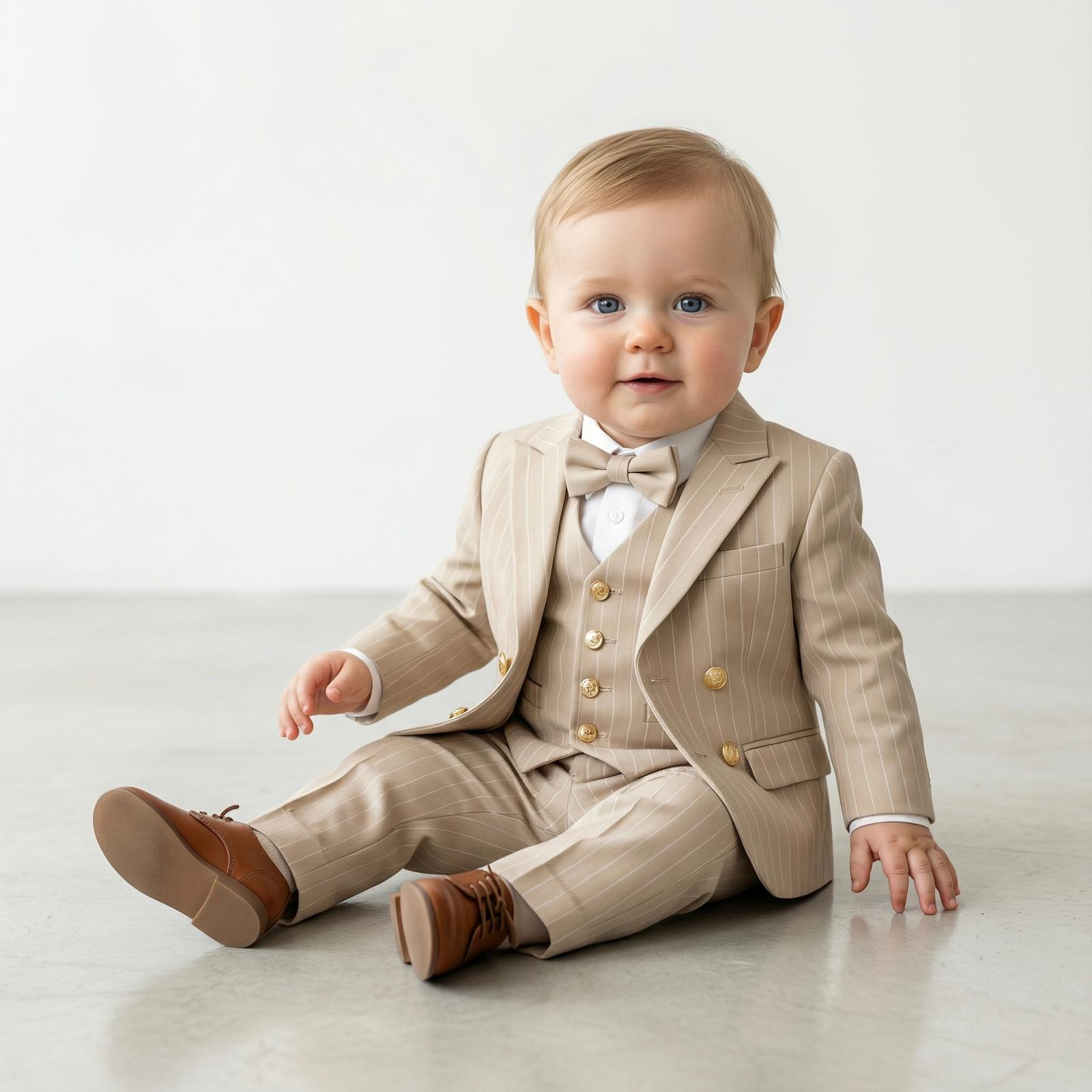 U komplet spada: sako, prsluk, košulja, pantalone i mašna.