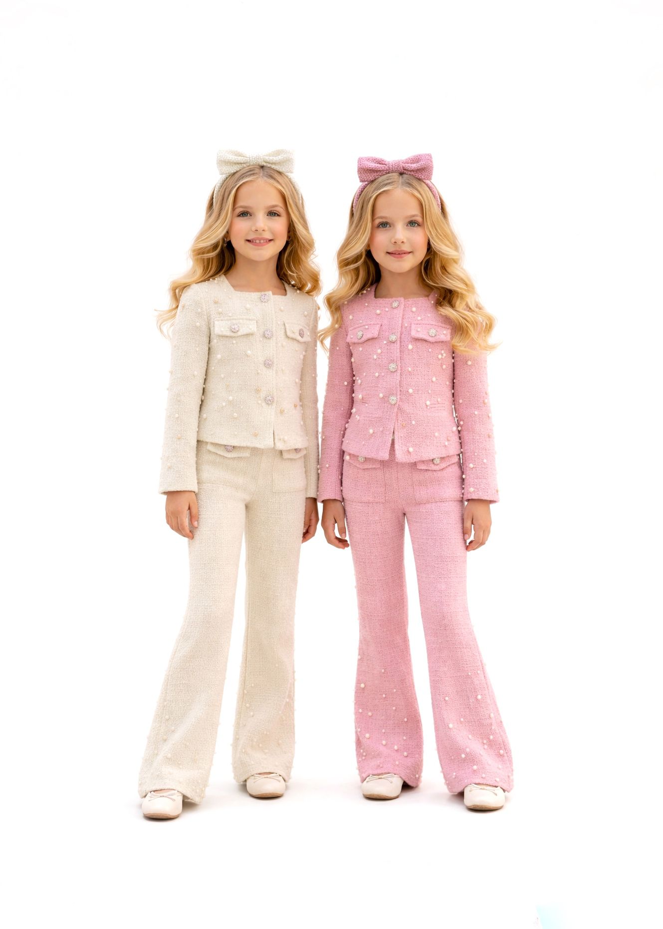 Beli biserni svečani komplet za devojčice